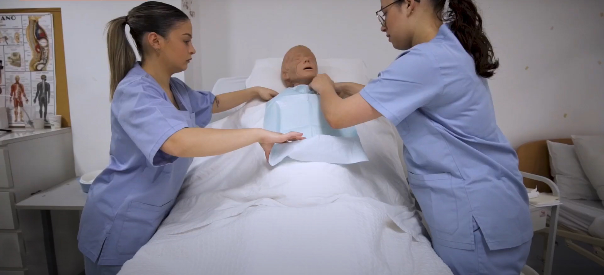 Aprender a prestar cuidados de saúde, higiene e conforto aos doentes, utilizando o laboratório de saúde que possui todo o tipo de material necessário a essa aprendizagem;