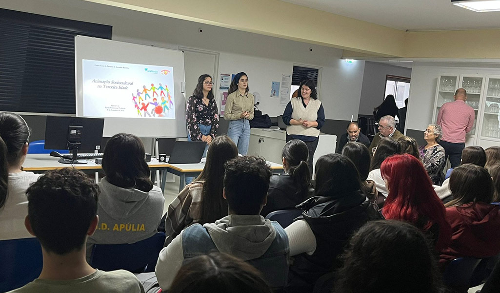 No dia 28 de outubro, duas alunas do Curso Técnico Auxiliar de Saúde, convidaram o Centro Social e Paroquial de Arcozelo, na pessoa da Dra. Márcia Vale, para ministrar uma ação de sensibilização aos alunos de Saúde sobre a importância da animação sociocultural na terceira idade. Tivemos o testemunho de alguns utentes da instituição, que partilharam com os nossos alunos as suas experiências e as suas dificuldades desde que entraram na terceira idade.