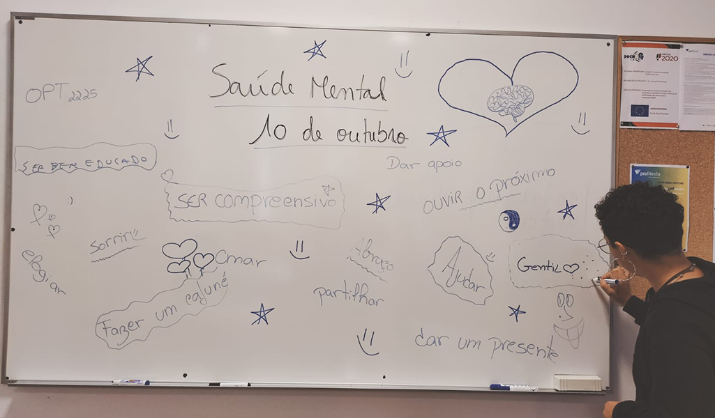 Com o objetivo de promover o bem-estar, a saúde mental, as competências pessoais e socioemocionais, o relacionamento interpessoal e sentimentos de pertença à turma/Escola, desenvolveu-se durante a semana de 10 a 14 de outubro uma atividade dedicada ao dia Mundial da Saúde Mental.
