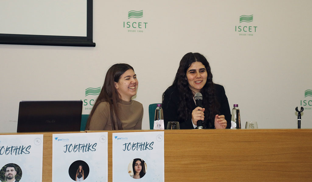 No dia 27 de março decorreu o evento JOBTALKS, em colaboração com o PROFITUR, no auditório do ISCET. Este evento foi dinamizado pelo OMA e pela Coordenadora do Curso de Turismo (Professora Bárbara Monteiro), em colaboração com os alunos da turma do 1.ºano de Turismo. O evento contou com a participação de ex-alunos dos Cursos de Turismo, Auxiliar de Saúde, Comunicação/Marketing, Relações-Públicas e Publicidade, Restaurante/Bar e Assessoria Empresarial que partilharam as suas experiências, dúvidas e certezas do seu projeto de carreira. Ocorreram ainda momentos de entretenimento proporcionados pelo Grupo de Dança “Dance for you” e pela cantora Ângela Taborda (ex-aluna do Curso de Turismo).